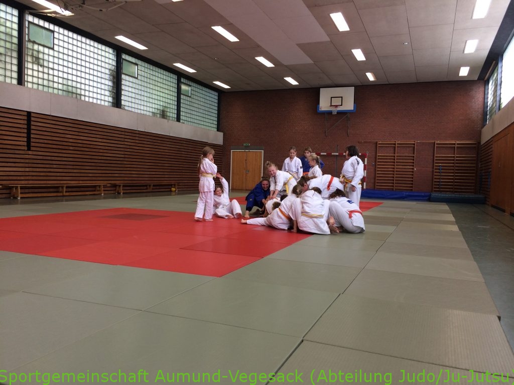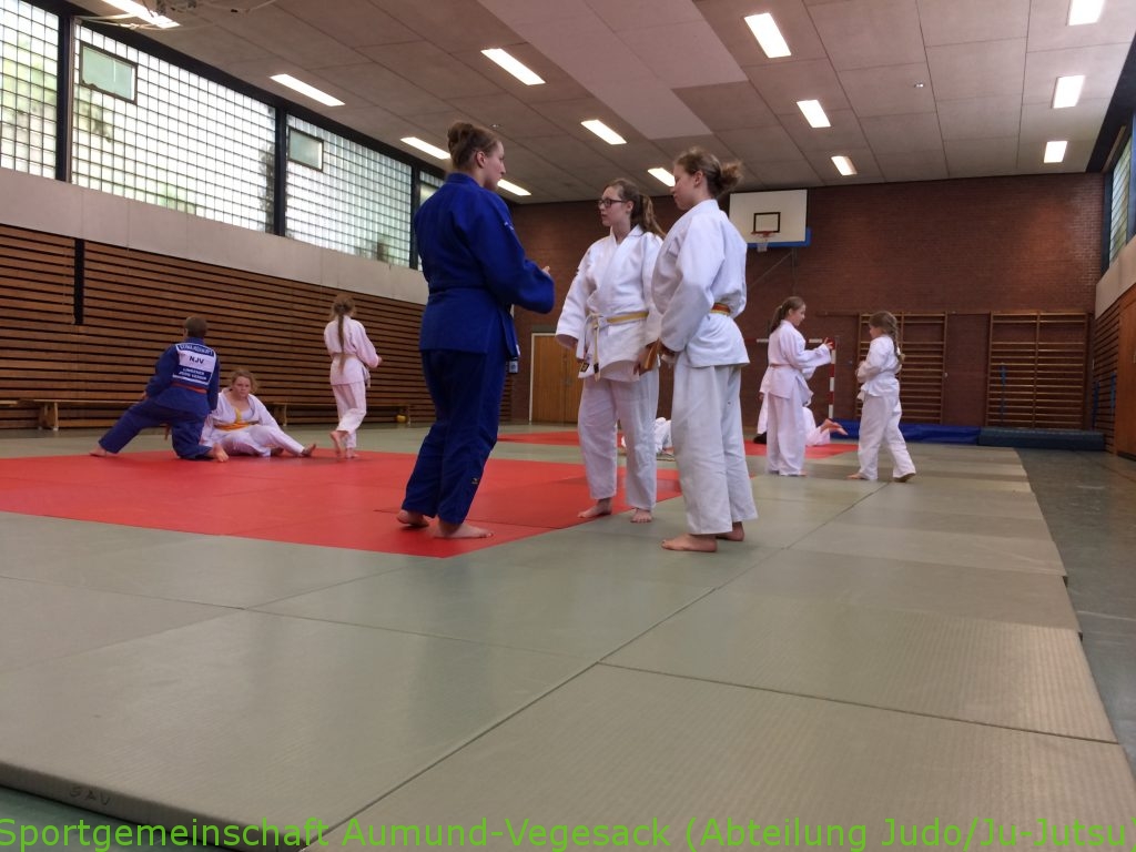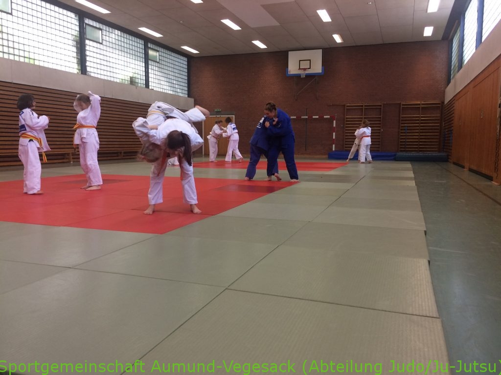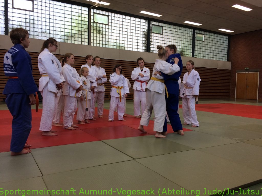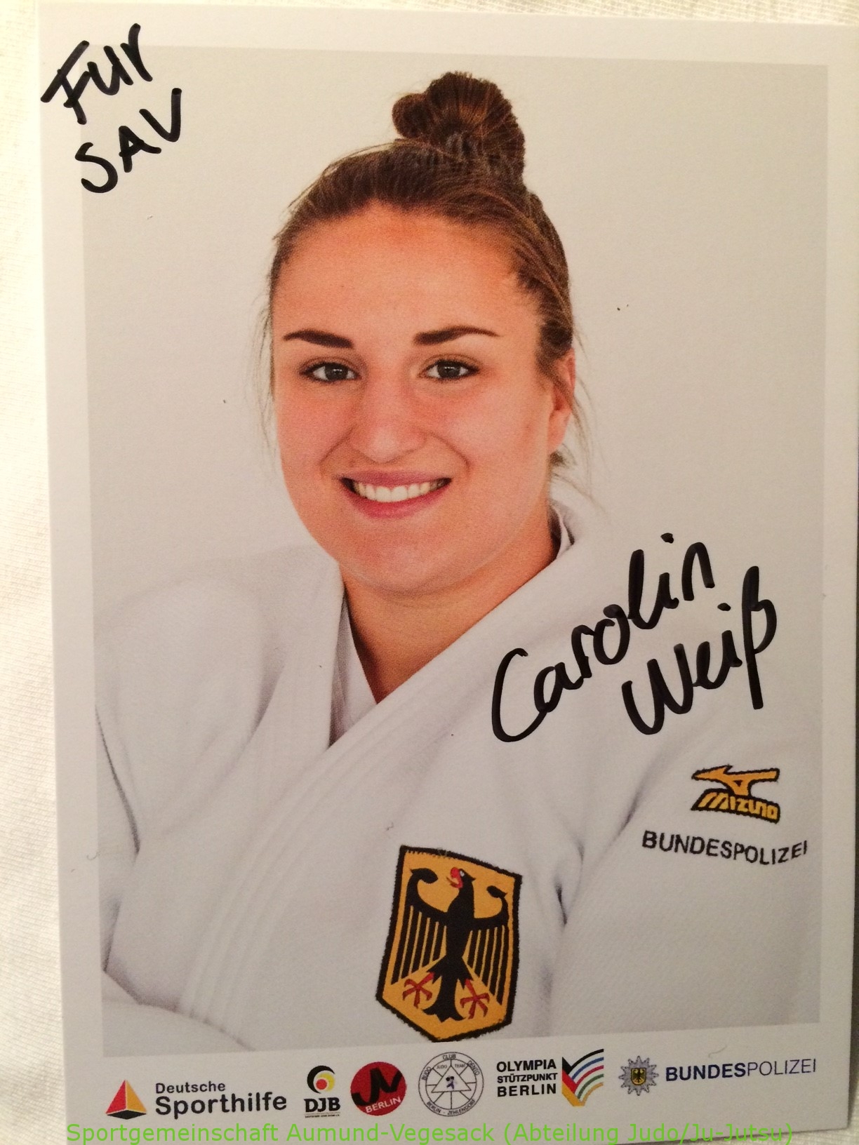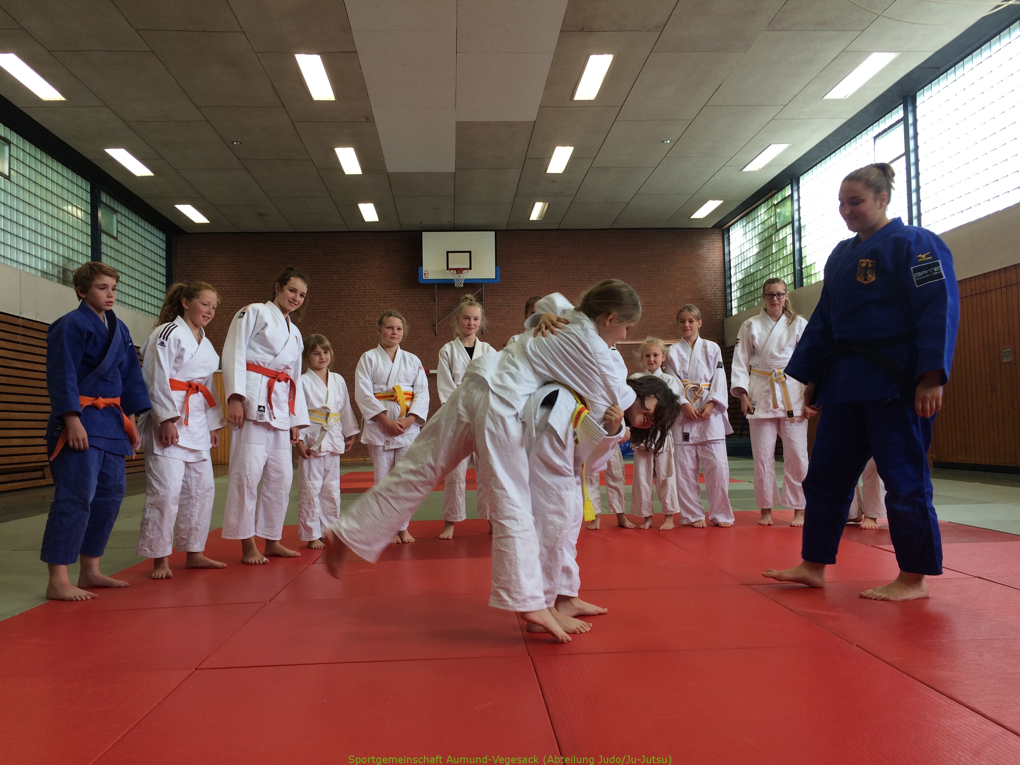 Am 17.09.17 holte der Bremer Judo-Verband Nationalkämpferin Carolin Weiß zu einem Lehrgang nach Bremen-Nord. Die sympathische Kämpferin übte in der ersten Einheit ihre Spezialtechniken O-goshi und O-uchi-gari mit den teilnehmenden Mädchen. Anschließend wurden Randoris gemacht. Bevor die Boden-Einheit dran war, in der verschiedene Umdreher geübt wurden und weitere Randoris stattfanden, spielte Carolin mit den Mädchen einige Spiele auf der Matte, die nebenbei Reaktion, Ausdauer oder die Muskelkraft verbessern können.