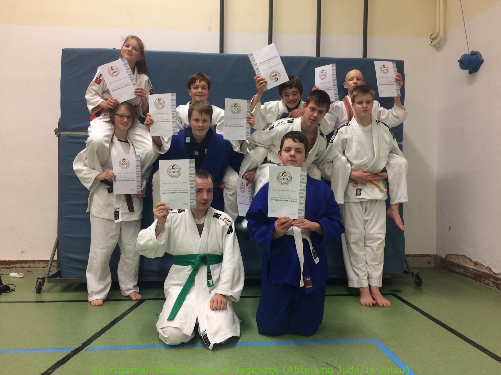 Zu Beginn des Jahres 2016 begann die Judo-Fortgeschrittenengruppe der SAV locker für das Judo-Sportabzeichen zu trainieren, nach den Sommerferien wurde die Vorbereitung dann intensiver. Beim Judo-Sportabzeichen geht es um judospezifische Fitness in vier Bereichen: Beweglichkeit, Kata, Judo-Fitness und Kraftausdauer.In dieser Reihenfolge wurden die Bereiche kurz vor Weihnachten von Abteilungsleiterin Marianne Könnecke und Trainerin Berit Grohnert abgeprüft.